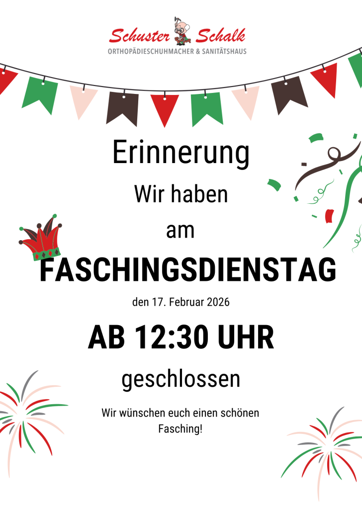 wir schließen am Faschingsdienstag bereits um 12:30 Uhr unsere beiden Filialen.